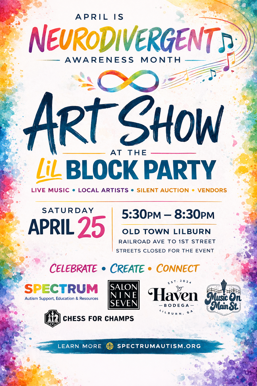 Kick off 2025 with kindness and join us on Saturday, February 22nd for a community celebration to support autism. Where local art meets a great cause! This show will feature several local artists from varying mediums. Entry is FREE, and all proceeds from the silent auction will benefit Twiddle U Inc., a nonprofit dedicated to providing fun and innovative education to neurodiverse and neurotypical children in the greater Atlanta area while giving parents the resources they need to help their children progress.